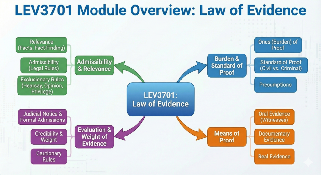 If you want to be a lawyer, LEV3701 is non-negotiable. Substantive law tells you what a crime is; the Law of Evidence tells you how to prove it in court.