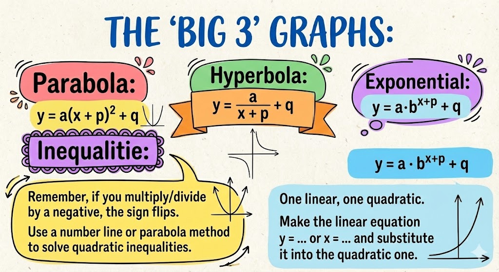 You need to master the properties of these graphs. Grade 11 introduces shifting (p and q).