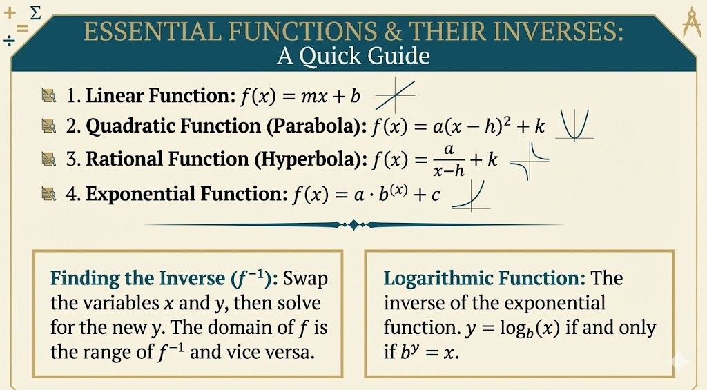 - The Inverse Trap: Examiners love asking for the inverse (f^{-1}) of a function. Remember the golden rule: Swap x and y, then make y the subject.