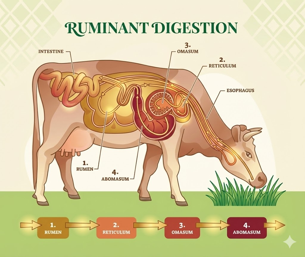 - Exam Tip: Be able to label the parts of the ruminant stomach (Rumen, Reticulum, Omasum, Abomasum) and explain the function of each.