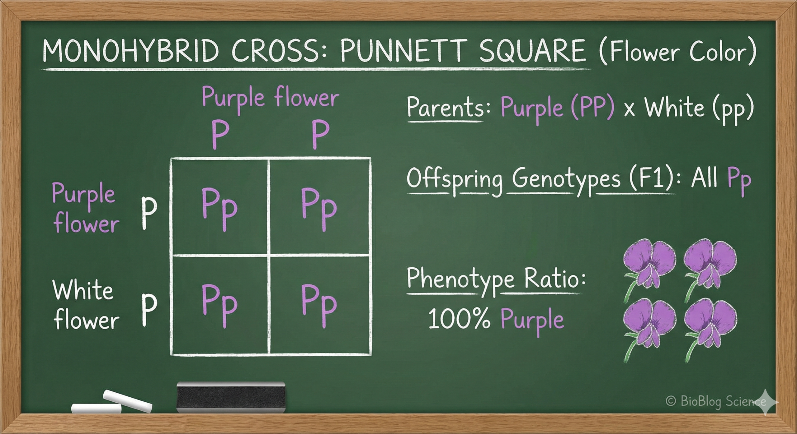 - Monohybrid Cross: One trait (e.g., Black vs. Red coat).